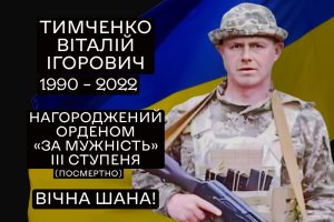 Великодолинська селищна рада висловлює глибоку шану та вдячність рідним і близьким Віталія Тимченка. Його подвиг назавжди залишиться в нашій пам’яті як приклад справжнього героїзму, честі та любові до Батьківщини.